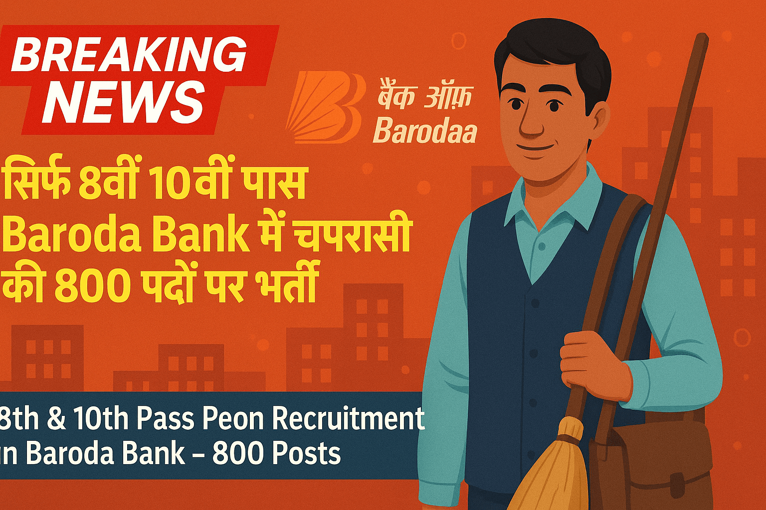 सिर्फ 8वीं 10वीं पास Baroda Bank में चपरासी की 800 पदों पर भर्ती
